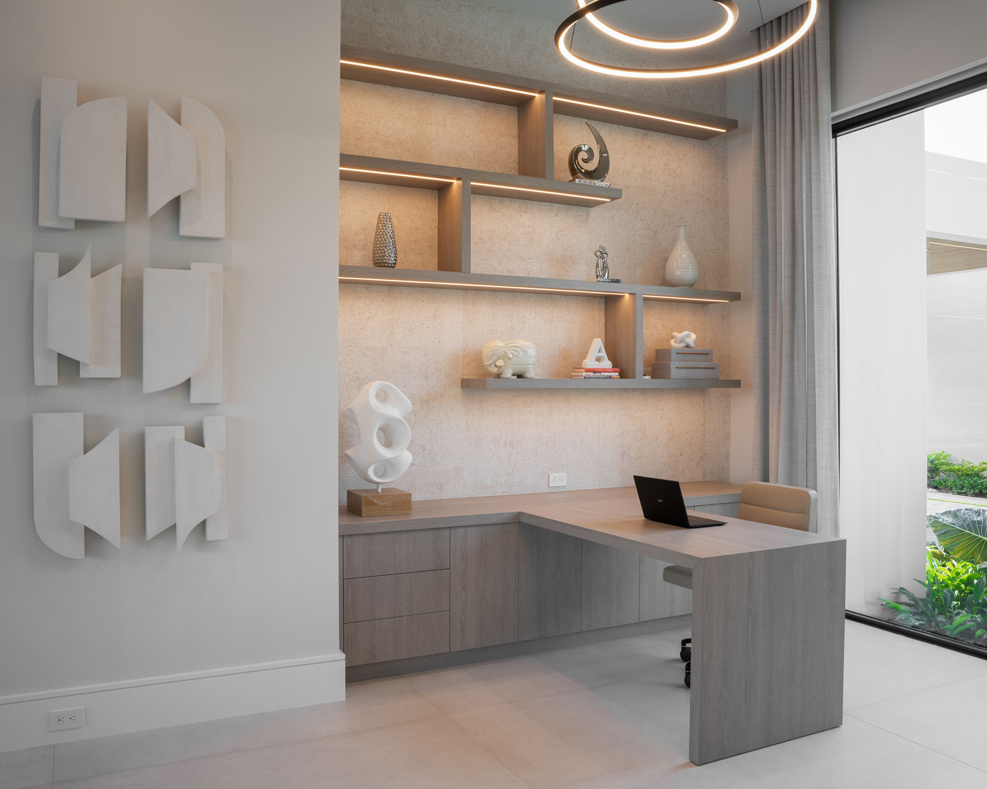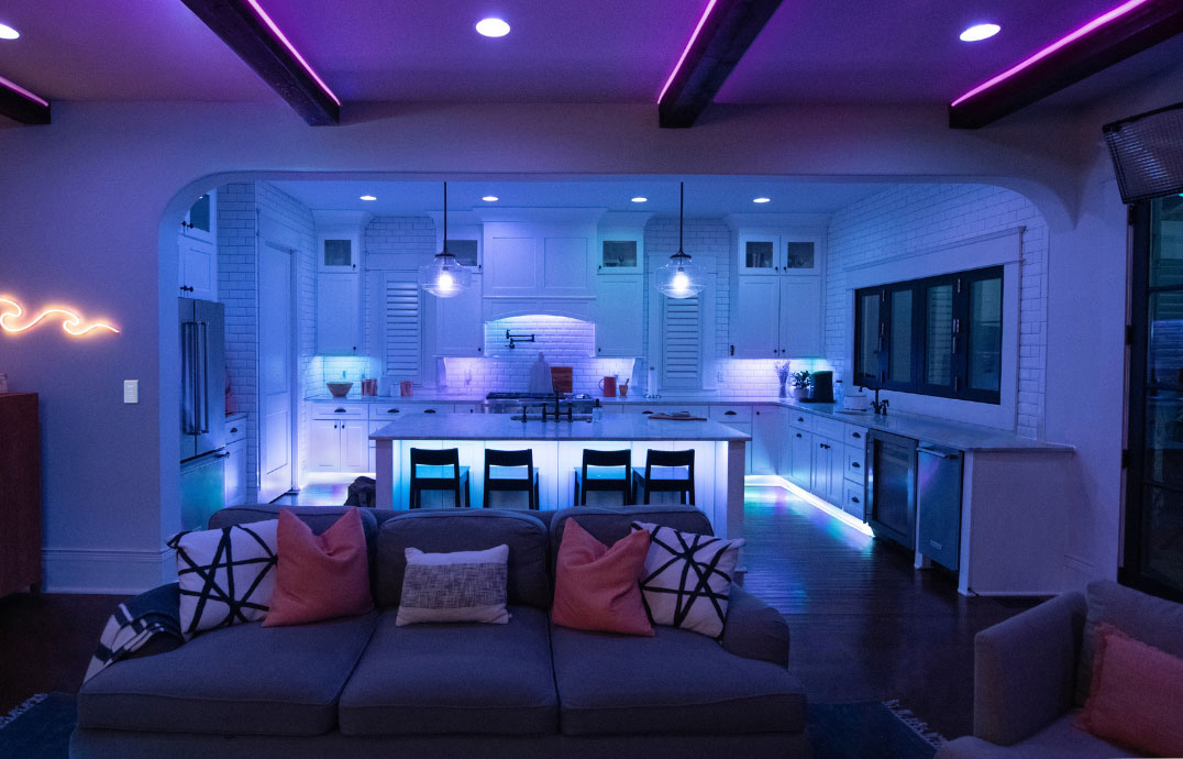 Transform each room with professionally designed lighting fixtures that work seamlessly with your smart lighting system. Dimmable LED and RGB-W fixtures allow you to refine brightness, adjust color, and create the perfect atmosphere for artwork, living spaces, kitchens, and architectural features. Whether you want warm, inviting tones or bold accent colors, intelligent fixture control gives you the freedom to shape the look and feel of your home with precision. Smart fixtures paired with a modern lighting control system bring flexibility, style, and energy-efficient performance to luxury homes across Palm Beach County.